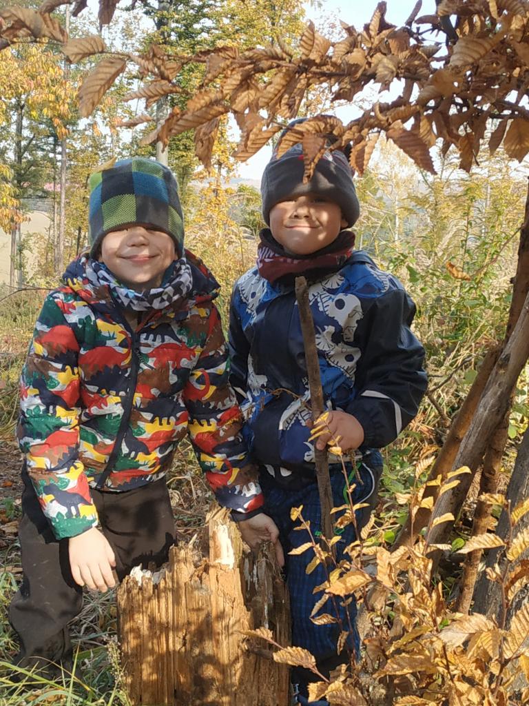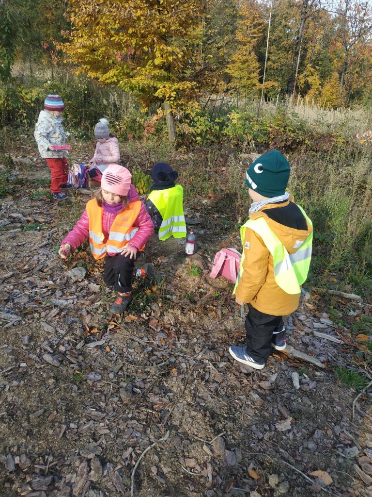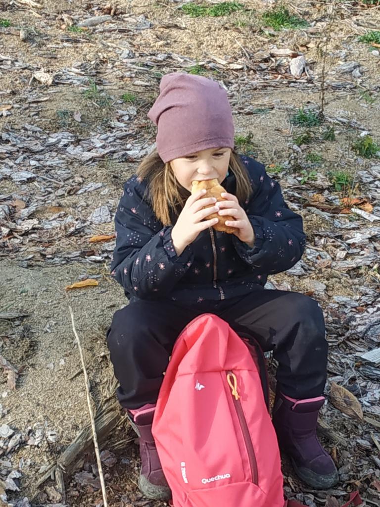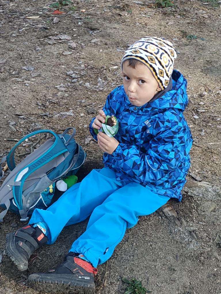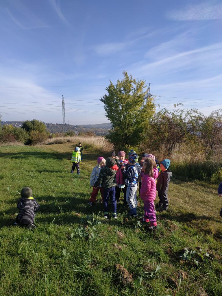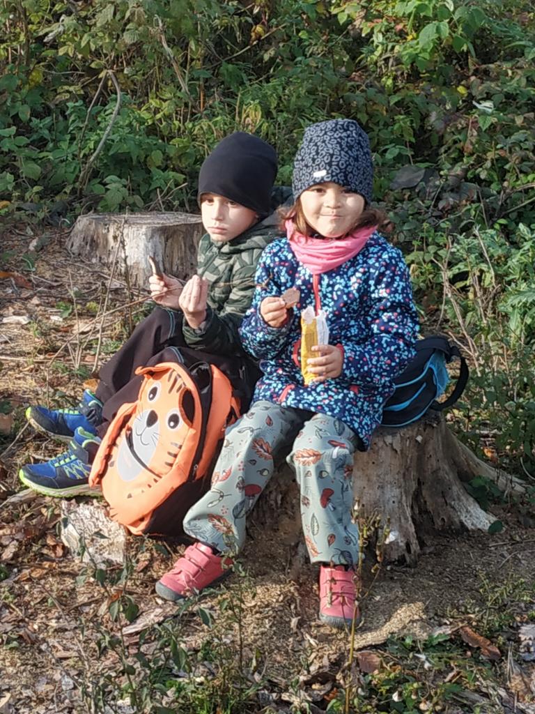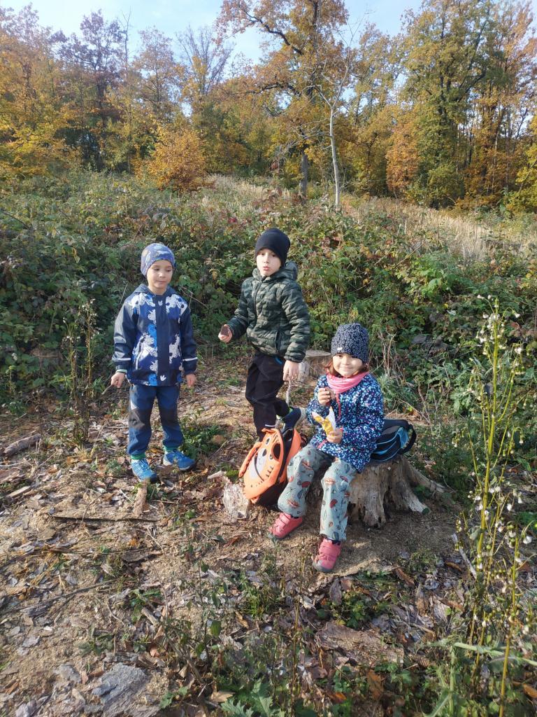 Pouštění draka, hudení nástroje z pařezu a klacků..... Nejvíce se těšíme na dobroty, které máme připravené od maminek v batůžcích.