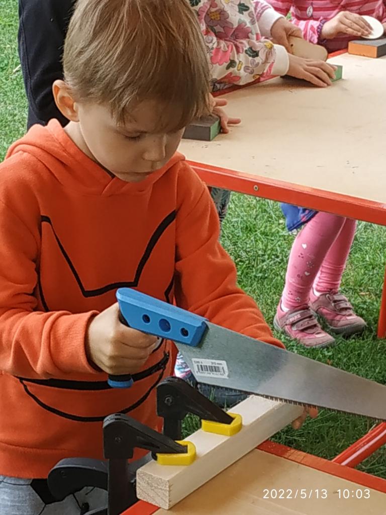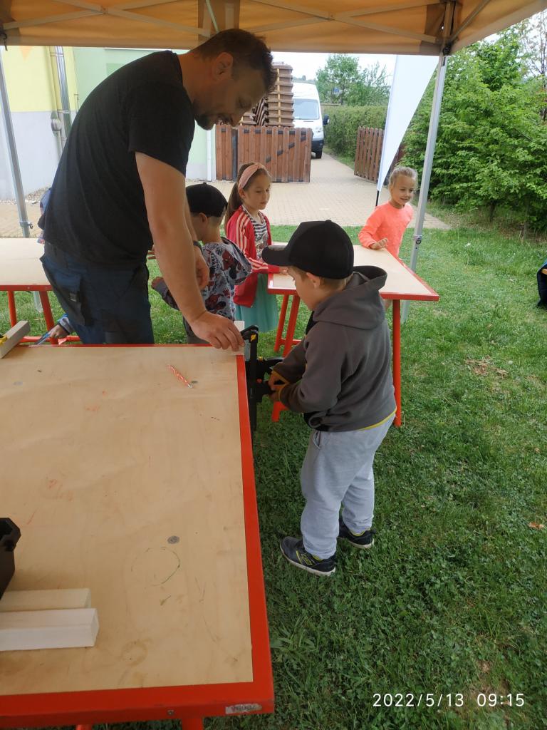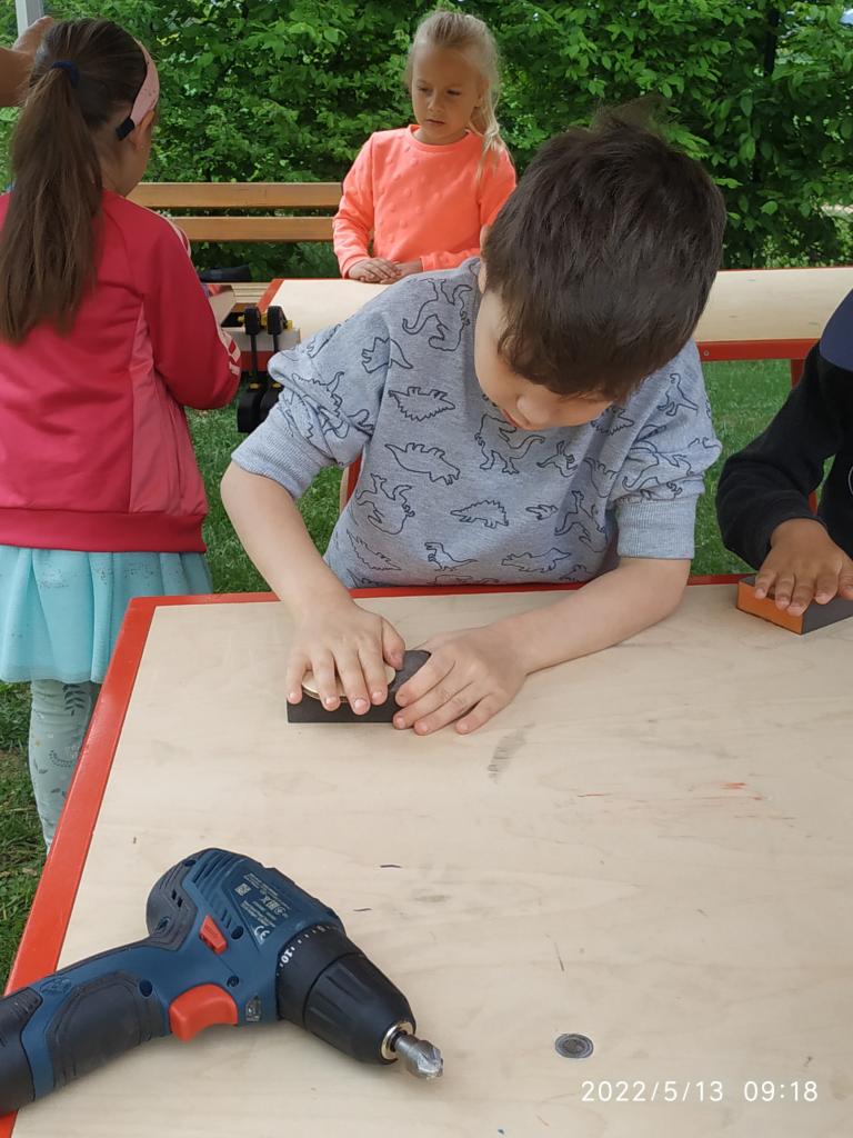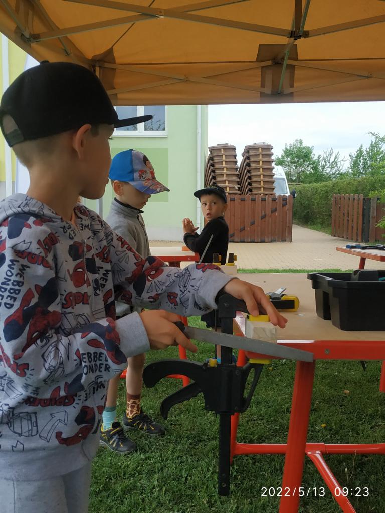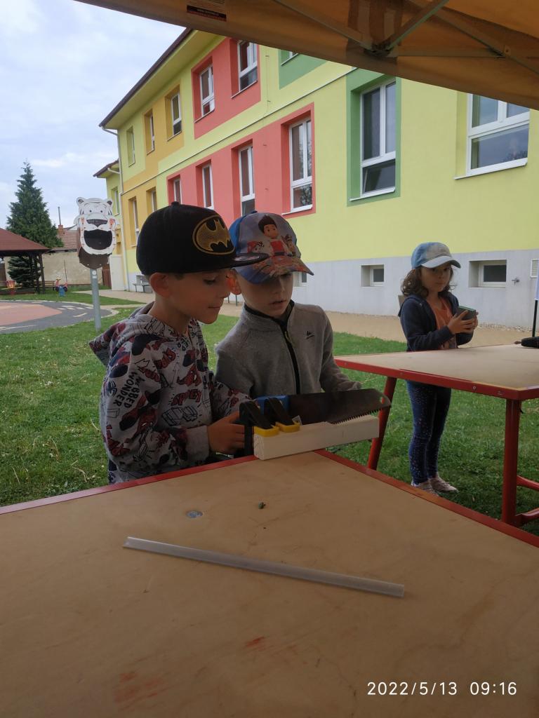 Polytechnická výchova se kterou k nám přijelo CVČ Lužánky. Děti pod vedením lektorů vyrobily hračku ze dřeva.