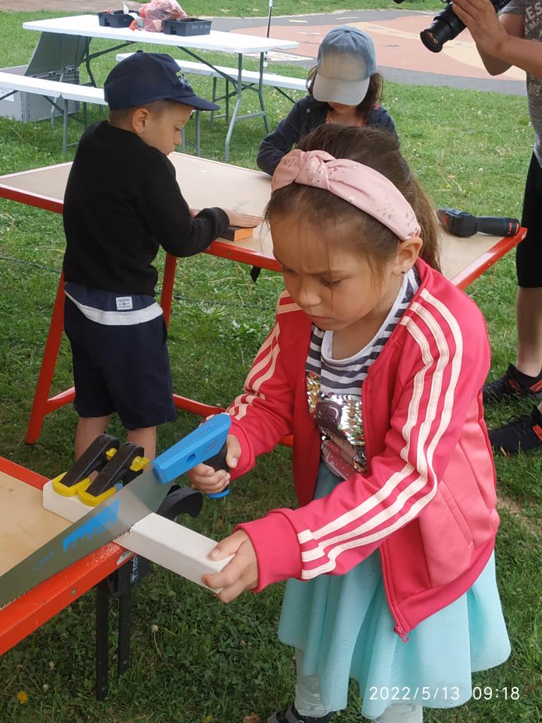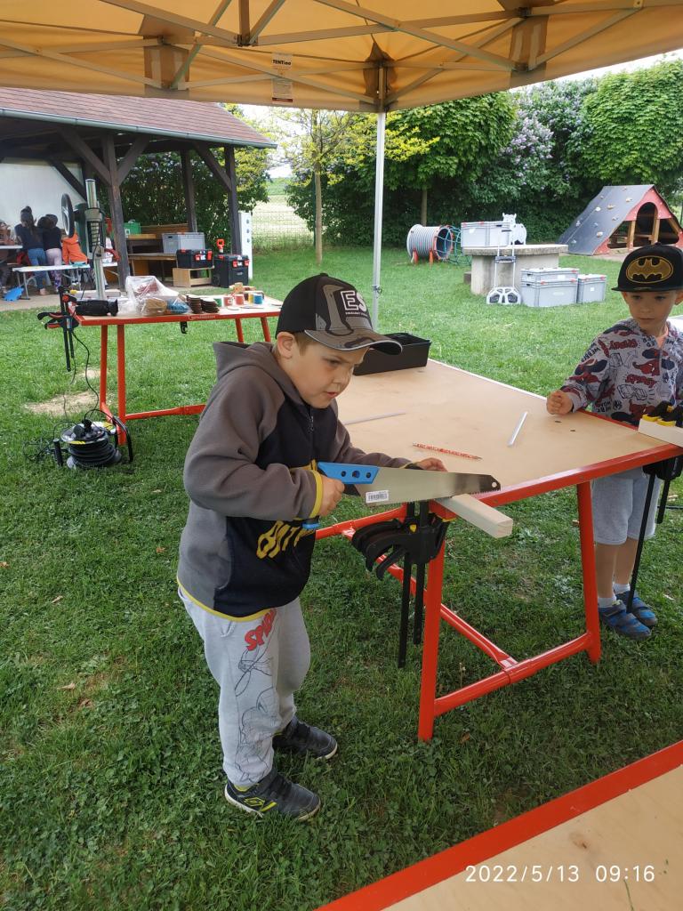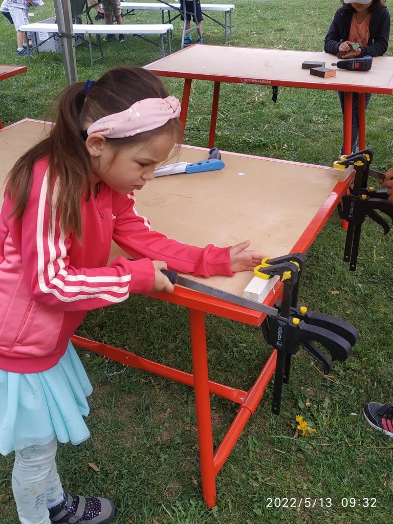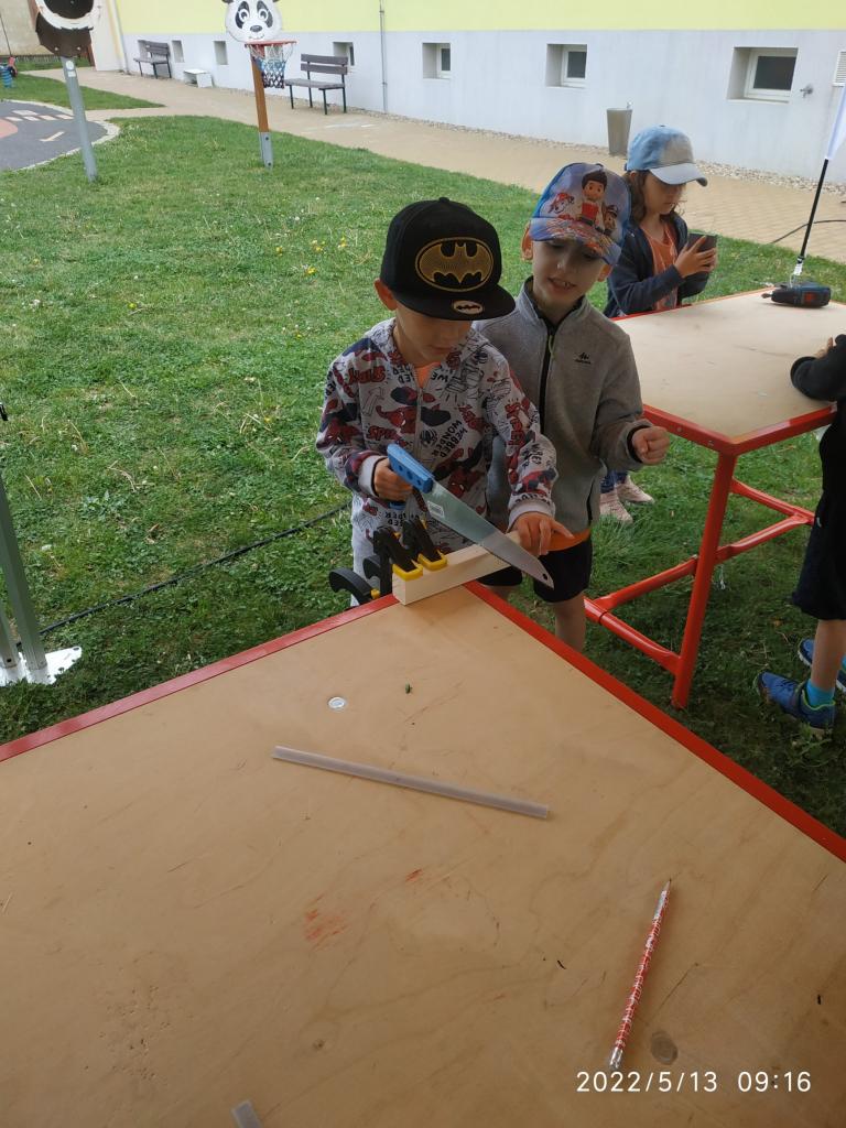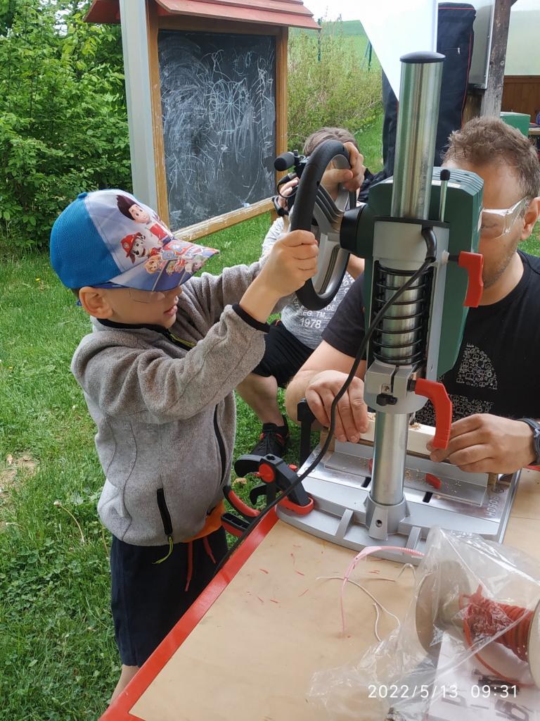 Polytechnická výchova se kterou k nám přijelo CVČ Lužánky. Děti pod vedením lektorů vyrobily hračku ze dřeva.