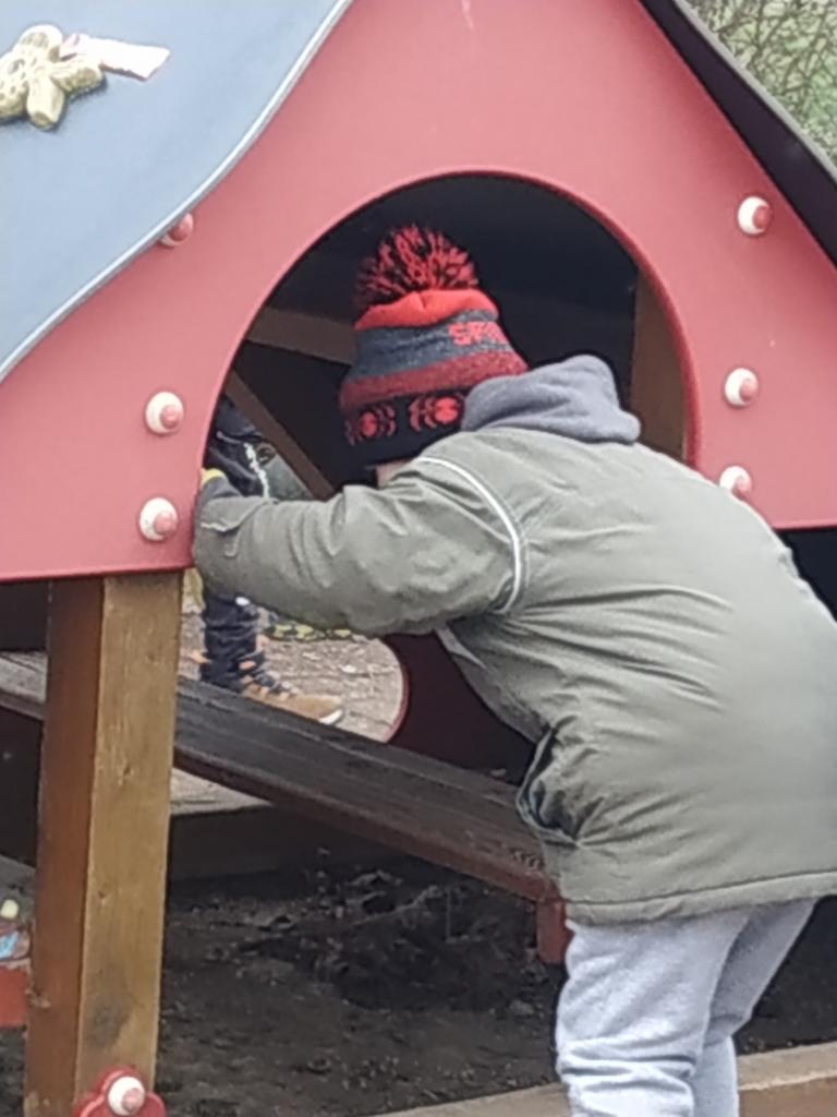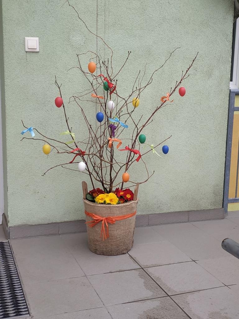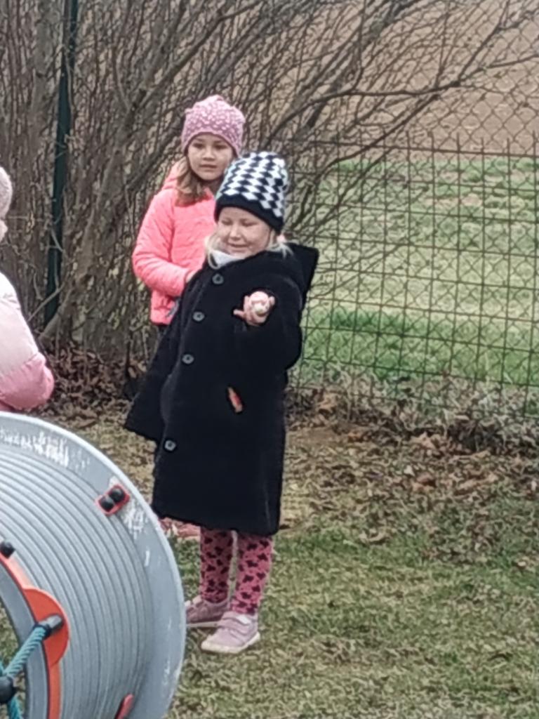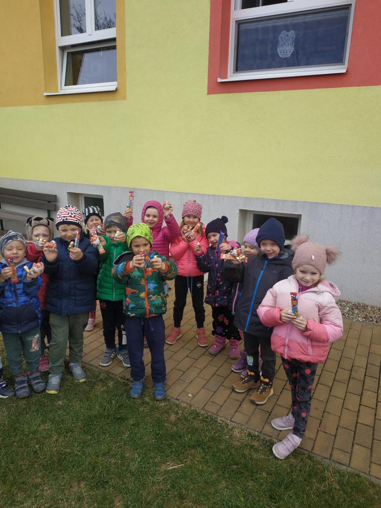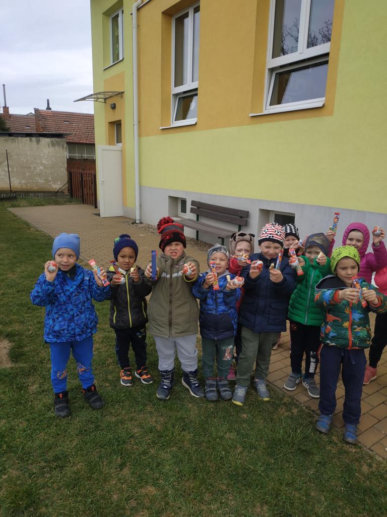 Na školní zahradě nám zajíček schoval vajíčka a čokoládové zajíčky, které děti hledaly