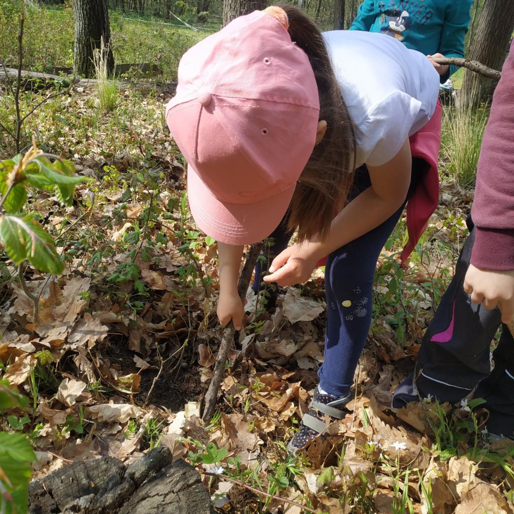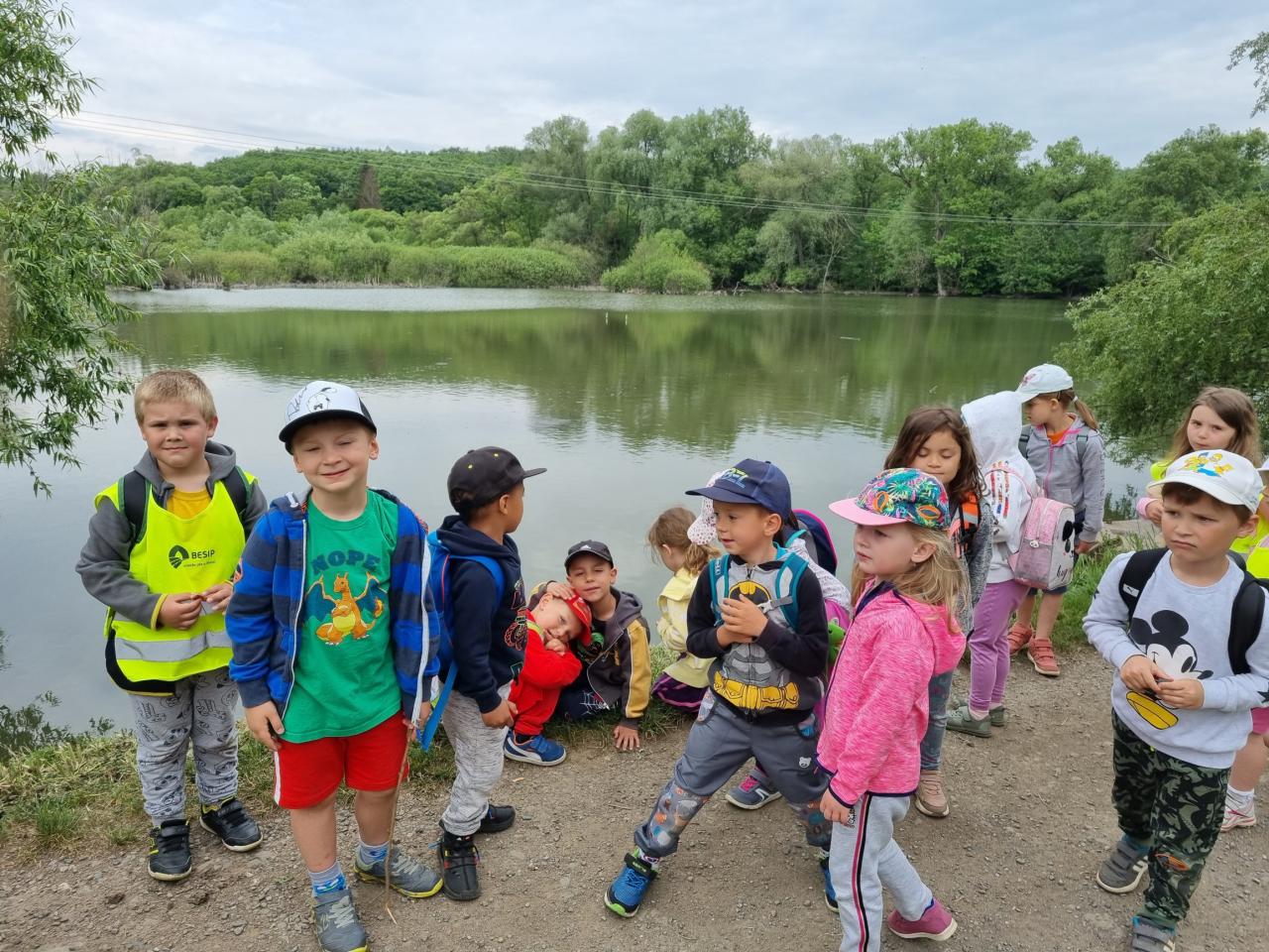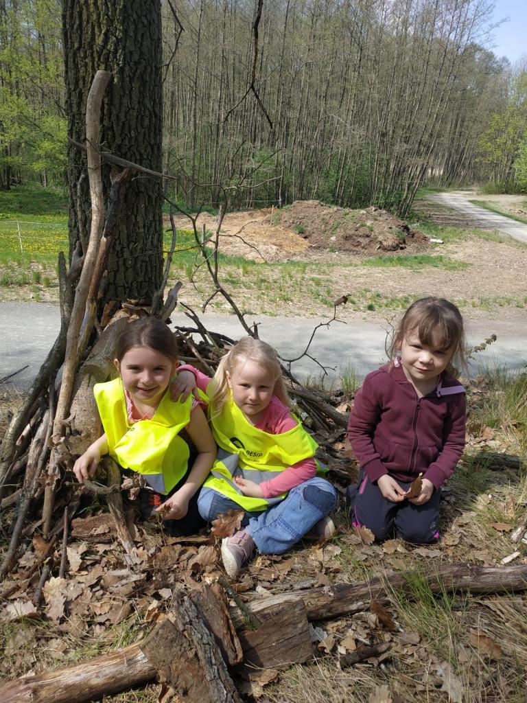 Vycházky do lesa - stavby domečků z přírodnin a k rybníku, nezbytné občerstvení po dlouhé cestě, .