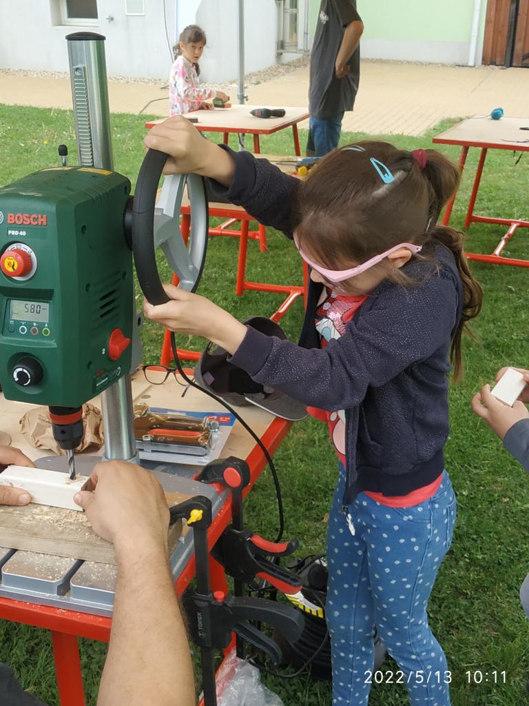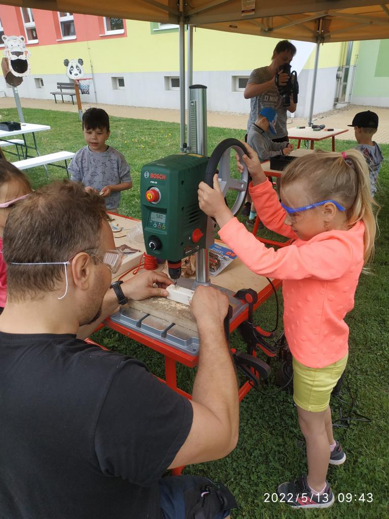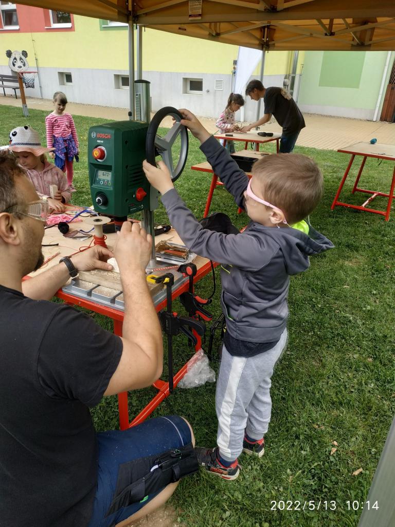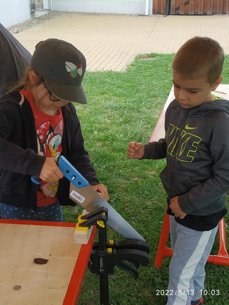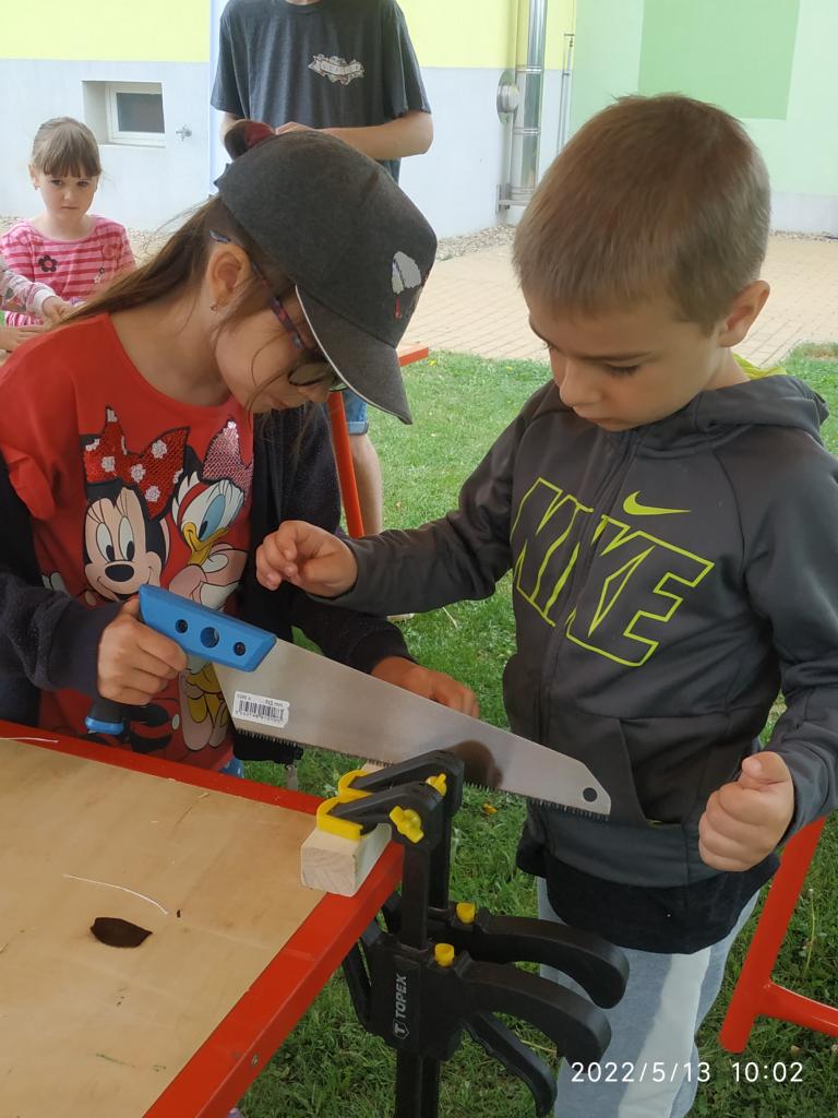 Polytechnická výchova se kterou k nám přijelo CVČ Lužánky. Děti pod vedením lektorů vyrobily hračku ze dřeva.