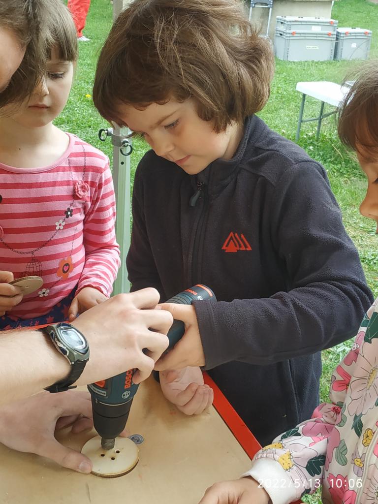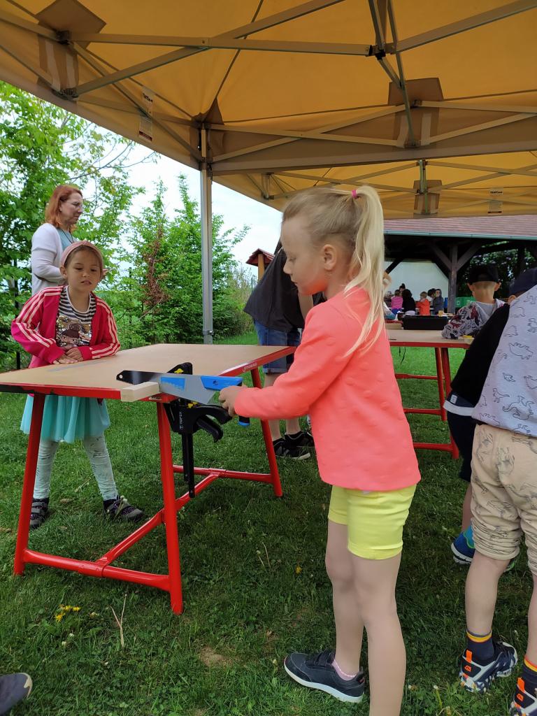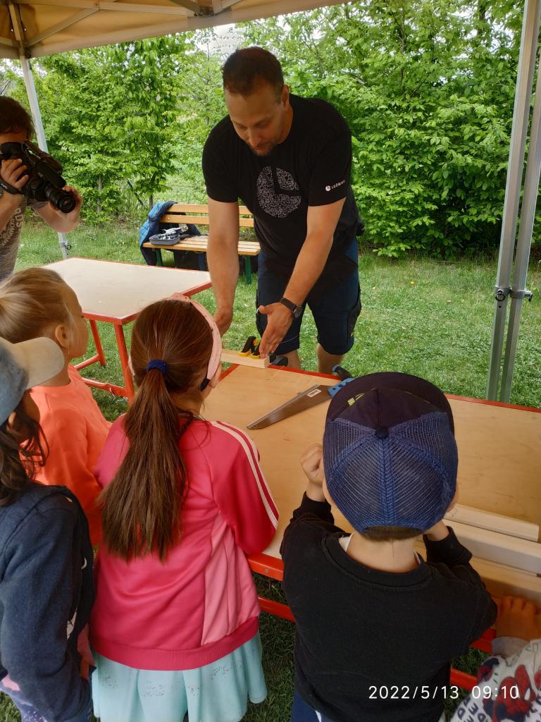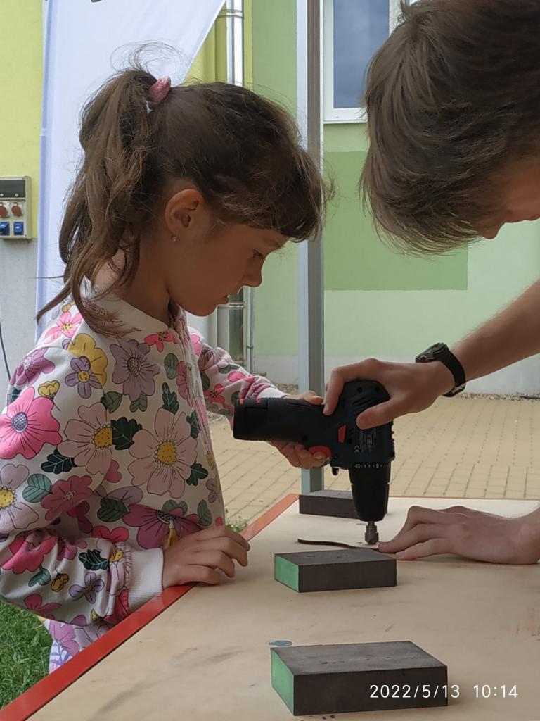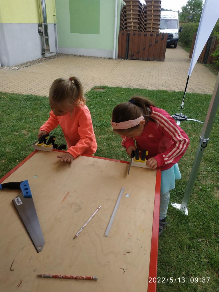 Polytechnická výchova se kterou k nám přijelo CVČ Lužánky. Děti pod vedením lektorů vyrobily hračku ze dřeva.